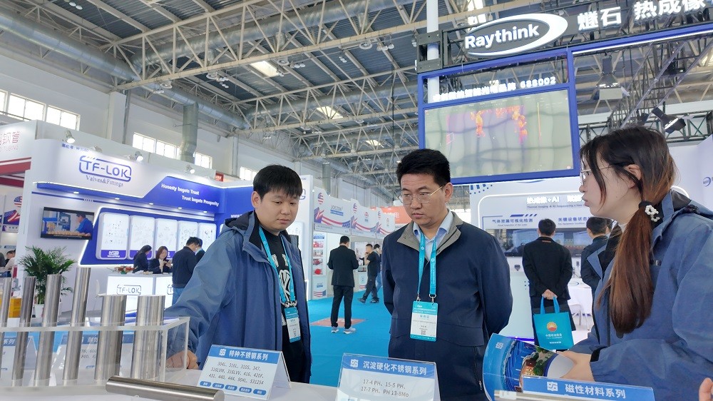 展会期间,申源集团展台人流如织,吸引了众多国内外专业观众与采购商驻足洽谈。作为国内领先的特殊钢材料及关键零部件制造商,申源集团紧扣石油石化行业“绿色、智能、高效”的发展趋势,重点展示了应用于极端工作环境下的高端阀门材料、耐腐蚀合金以及精密锻件。